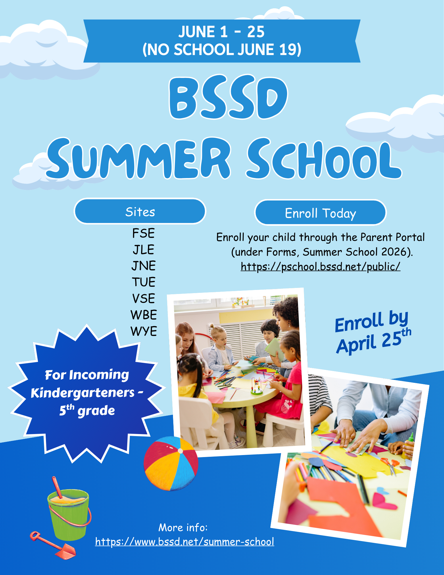 Wednesday Update April 1, 2026 Families will receive the Wednesday Update each week. Important BSSD & JNE information, reminders, and events will be included in this weekly newsletter. JNE &...